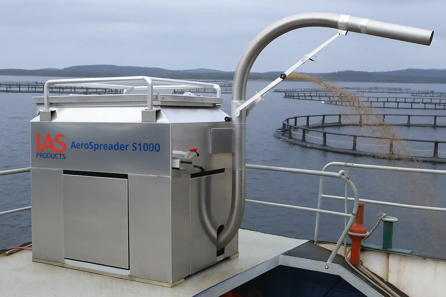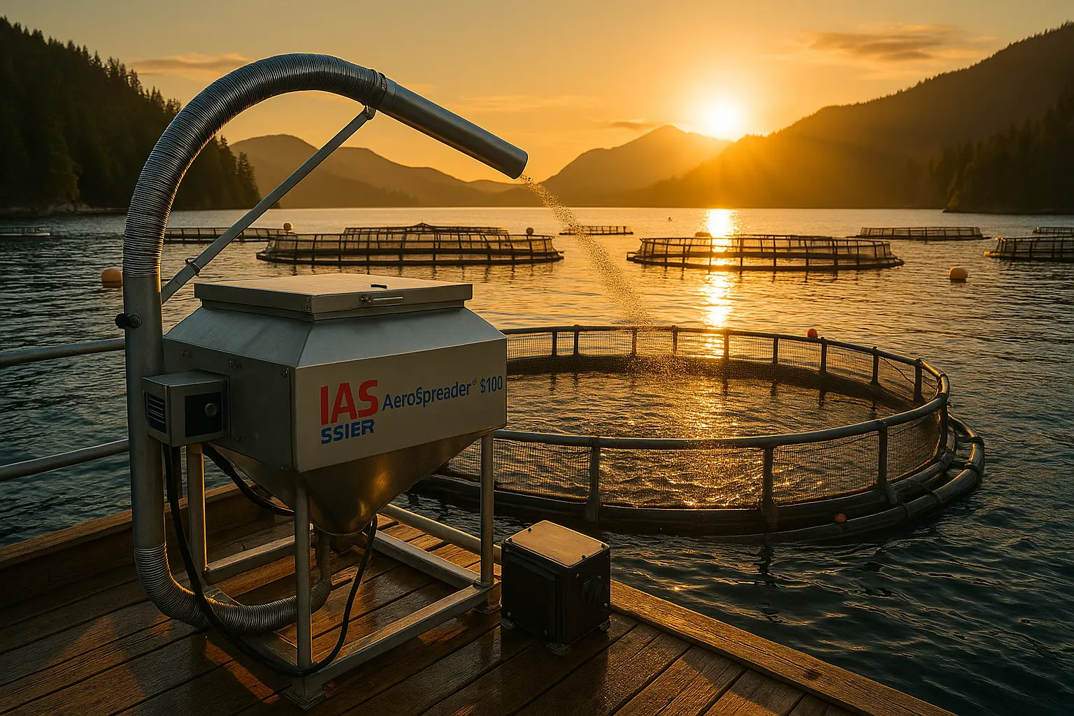 Precision feed broadcasting for hatcheries, ponds, RAS, and offshore cages.